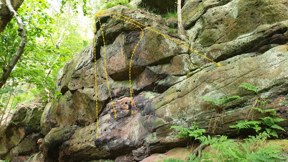 | 1 | Dyno Traverse | 4 | L-R The steep wall to the horizontal break follow it to the dyno hold then drop down the sharp juggy edge. |